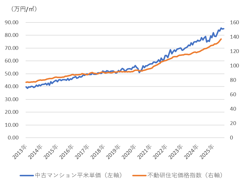 ¡‰ñ‚ÍŽñ“sŒ—‚Ì’†ŒÃƒ}ƒ“ƒVƒ‡ƒ“‚̉¿Ši„ˆÚ‚ɂ‚¢‚ÄAƒŒƒCƒ“ƒYƒf[ƒ^‚Æ•s“®Œ¤Z‘ŠiŽw”‚Ì2‚‚̃f[ƒ^‚ð—p‚¢‚ĉðà‚µ‚Ü‚·B